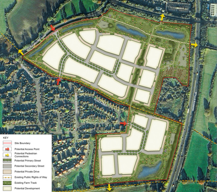 Half the Old Budbrooke Road site would be affordable homes, and the development would also include "extensive" public open space, community gardens/orchards and play areas.