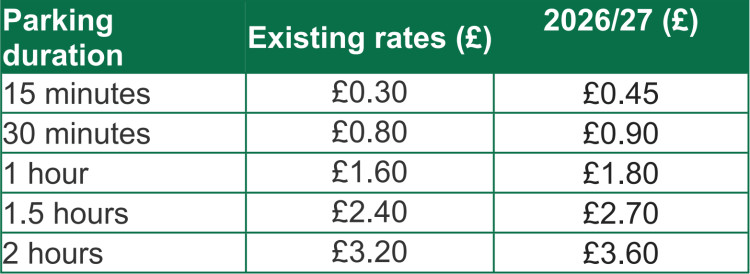 The other on-street charges are due to go up by more than 10 per cent across Leamington, Warwick, Stratford and Kenilworth from April 2026.