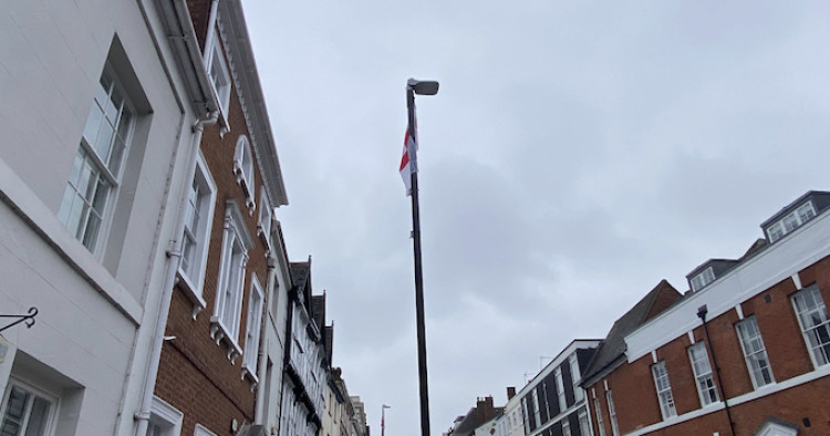 Installed by group 'Raise the Colours', the flags have been installed on lampposts across the town centre.