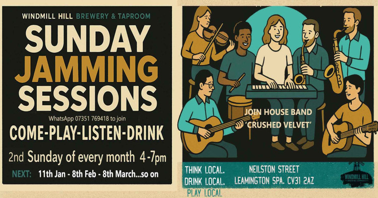 Nearby in Leamington, why not celebrate live music at Windmill Hill Brewery this Sunday?