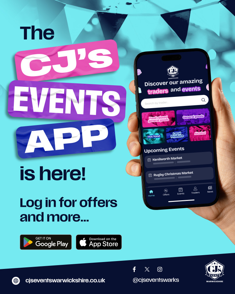 The CJ's Events Warwickshire app is now available to download for free on the Apple App Store and Google Play.