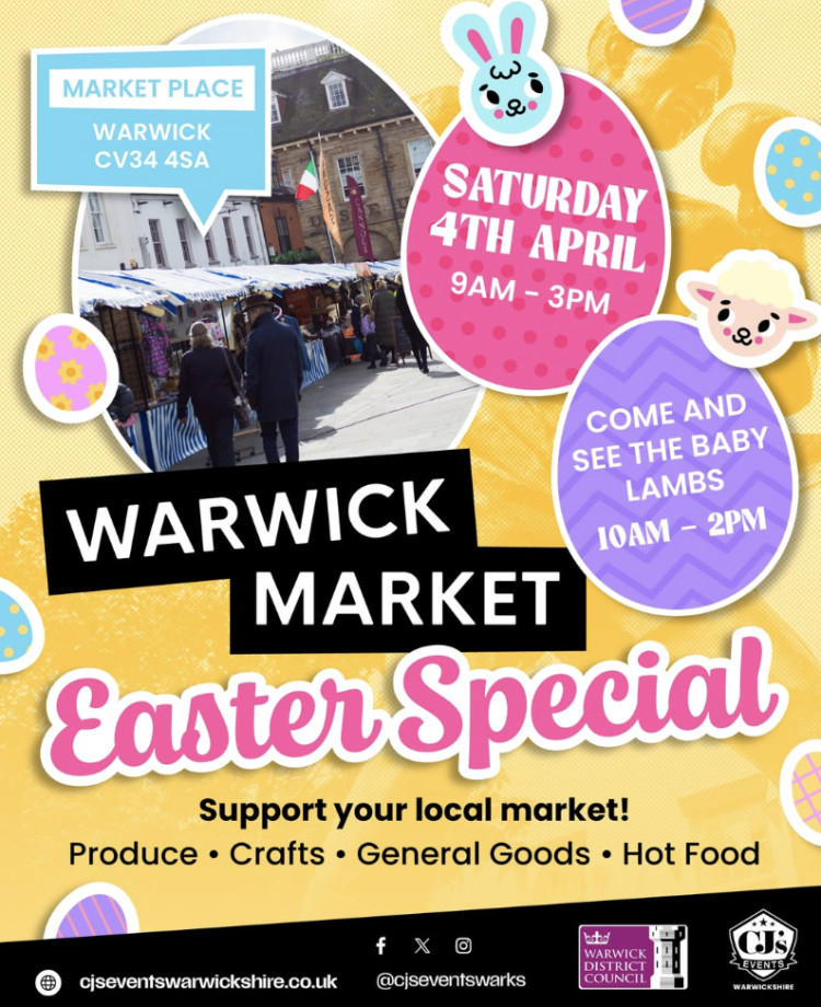 CJ's Events shared: "Discover gourmet treats, one-of-a-kind gifts, and artisan creations as you soak up the lively atmosphere. Brought to you in partnership with Warwick District Council, Warwick Market is the perfect place to shop local, support small businesses, and enjoy a day out,