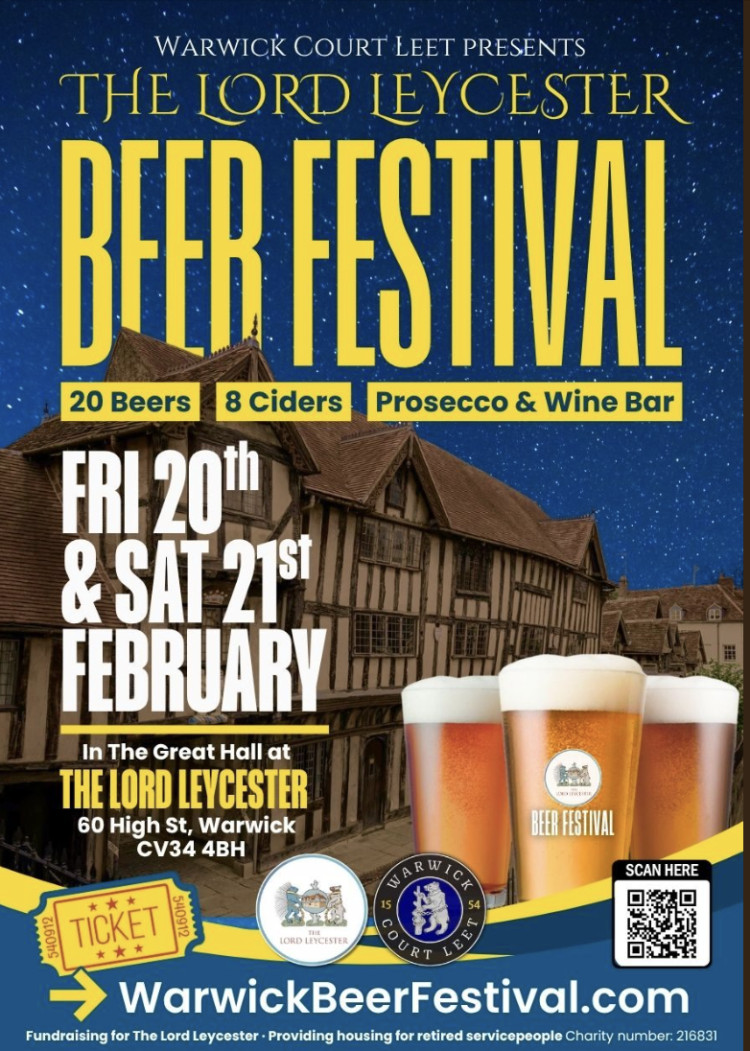 The return of The Lord Leycester Beer Festival, proudly organised by Warwick Court Leet, on Friday 20th & Saturday 21st February 2026.