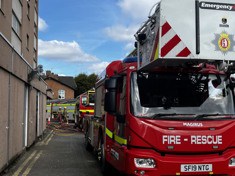 Warwickshire Fire and Rescue Service vehicles gather in Leamington