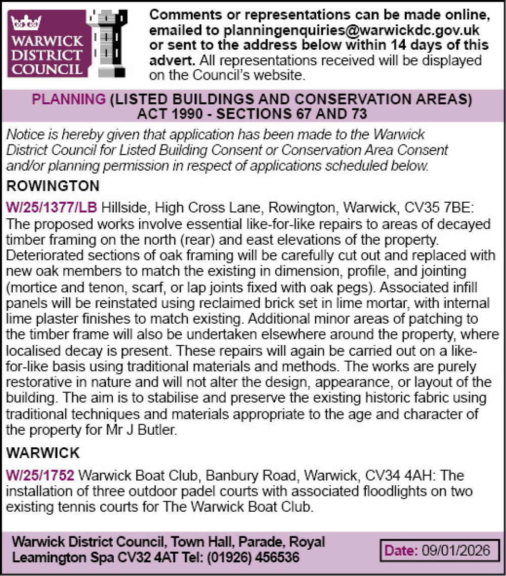 Weekly planning notices - Warwick District Council