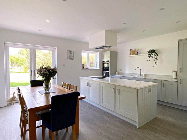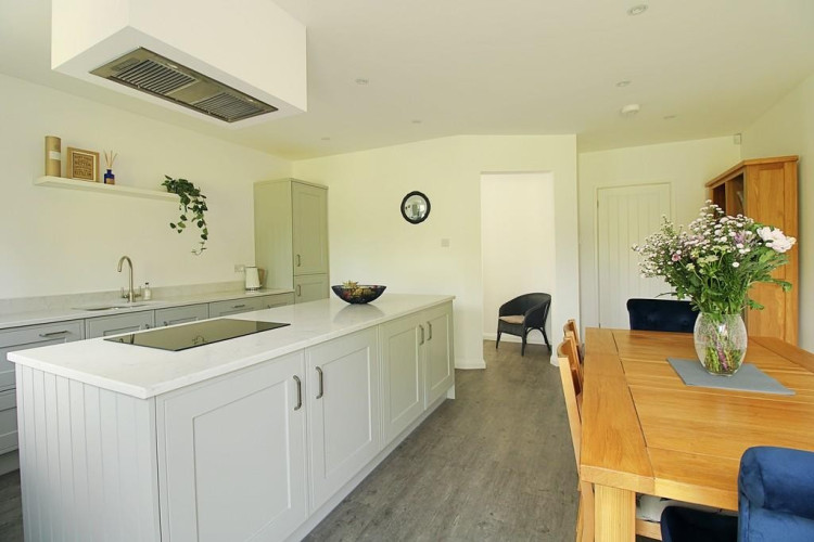 "The decor is tasteful and in neutral colour tones, there are parquet floors and a super hand painted kitchen with quartz worktops and central island unit and underfloor heating."